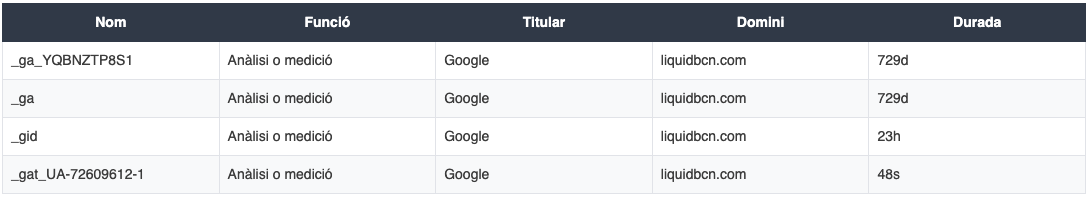 A la següent taula s'expliquen les galetes que utilitzem i per a què: